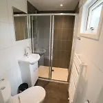 该场地的房间带有配有的步入式淋浴间 和独立卫生间浴室,有沙发,咖啡/茶设施 和卫星频道平板电视.